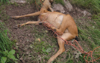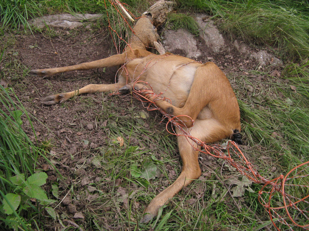 Weidenetze – Dieses Zaunsystem wirkt wie ein Fangnetz. Wenn sich Tiere darin verheddern, haben sie keine Chance mehr, sich selber zu befreien. Sehr gefährlich sind Weidenetze auf unüberwachten, abgelegenen Weiden.